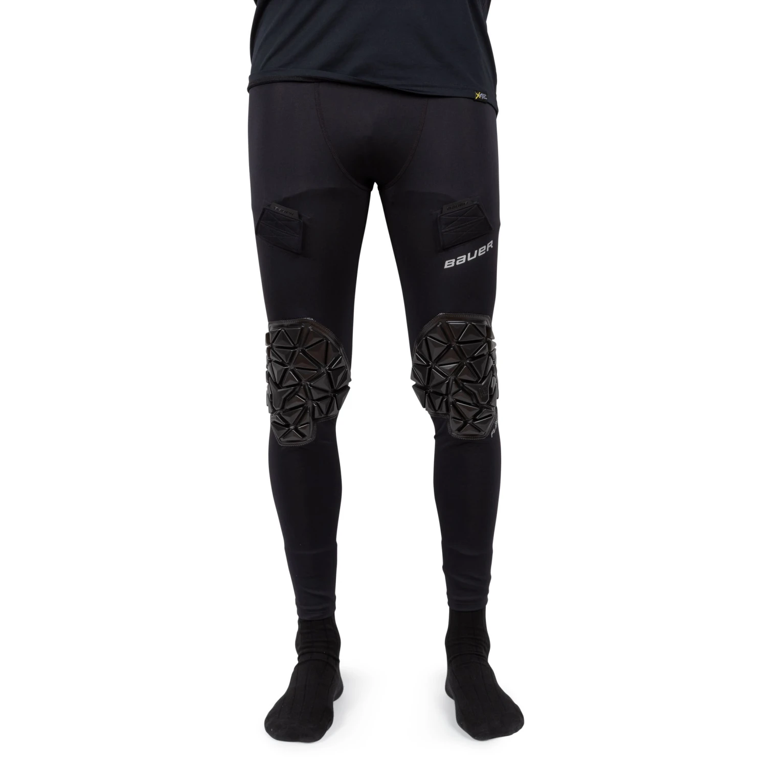 The Bauer Elite Senior Goalie Padded Pants is built specifically for hockey goaltenders. The fitted/compression style pants have strategically placed padding that gives you extra protection in areas where pucks tend to find there way in to the body. The Bauer Padded Goal Pants also feature a velcro sock attachment on the front and back of the thigh. With an elastic style waistband, these padded pants are comfortable to wear under your gear, and form nicely to the body.
