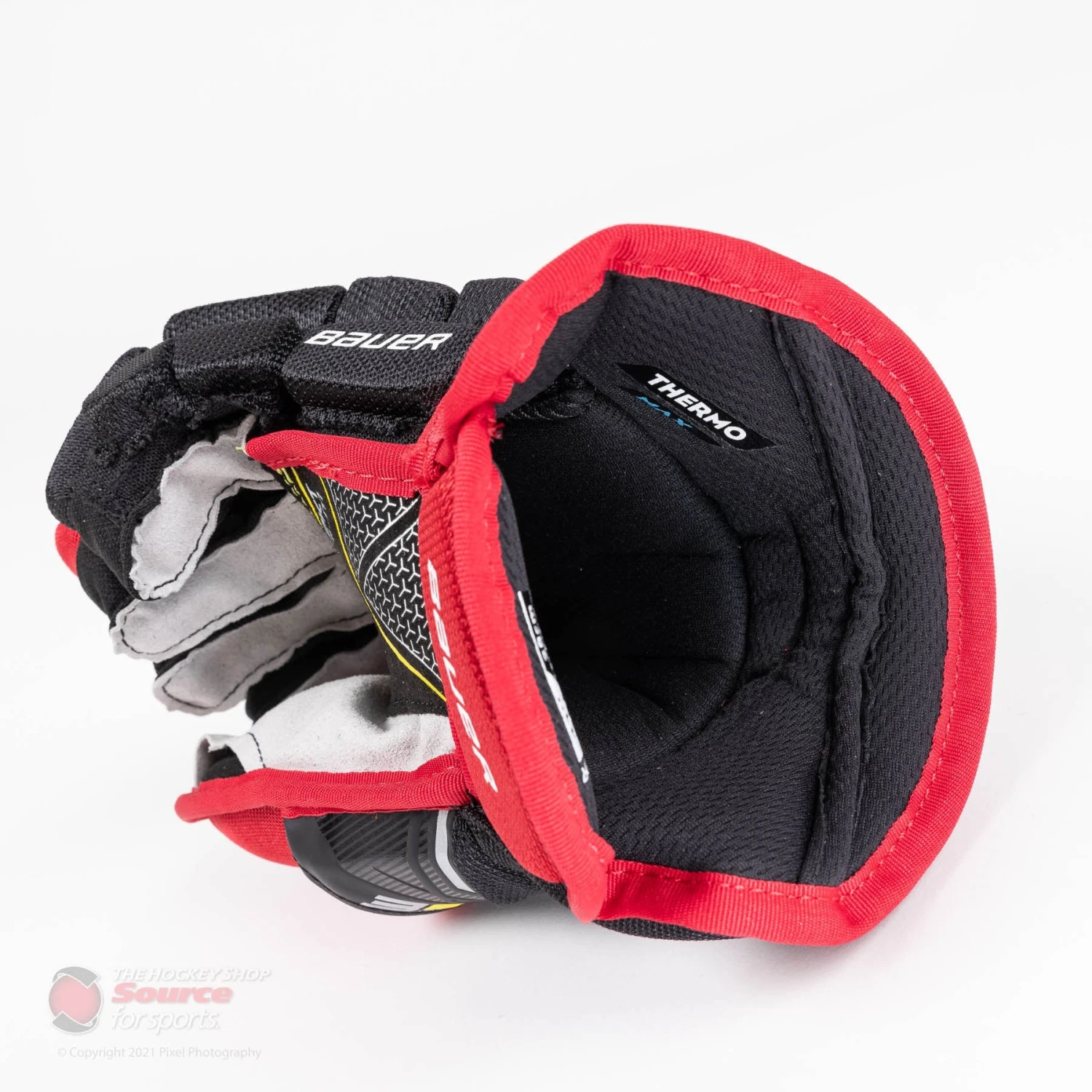The Bauer 3S Pro junior glove uses Supreme’s traditional finger design. The fingers are also filled with Hyperlite high-density and PE (polyethylene) foam throughout. This allows you to maximize your hand movements without sacrificing any protection. Additionally, Bauer has added extra padding along the side of the pinky finger.