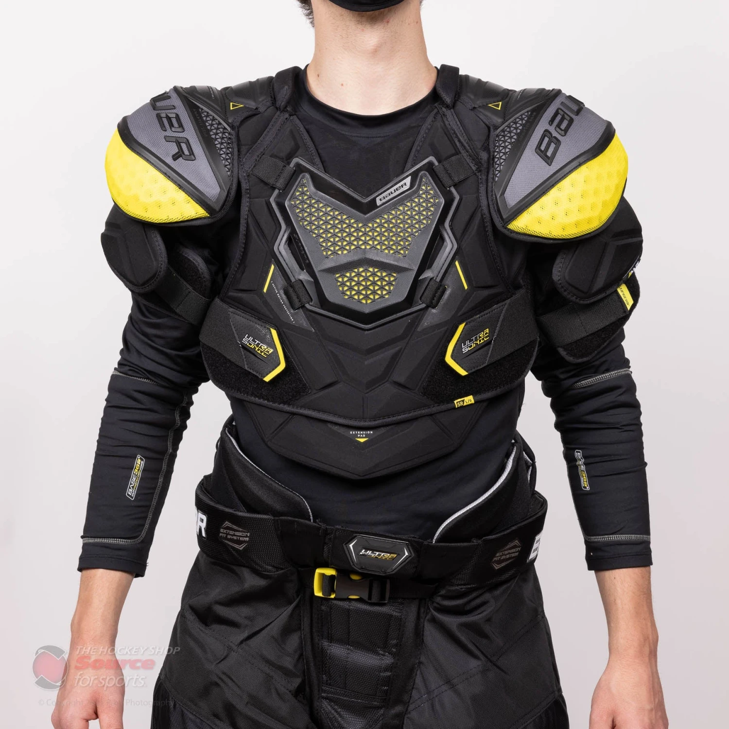 The new Bauer Supreme UltraSonic SR Hockey Shoulder Pads have been designed and engineered for the elite player who wants a full coverage protection to be confident playing in traffic, without compromising their ability to be fast. The key elements this year defining the new UltraSonic shoulder pad are the new AMP shoulder cap, ADAPTIV Skin Sternum, and the extended rib wrap.